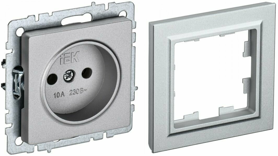 IEK BRITE Розетка 1-местная без заземления без защитных шторок 10А РС10-1-0-БрА алюминий