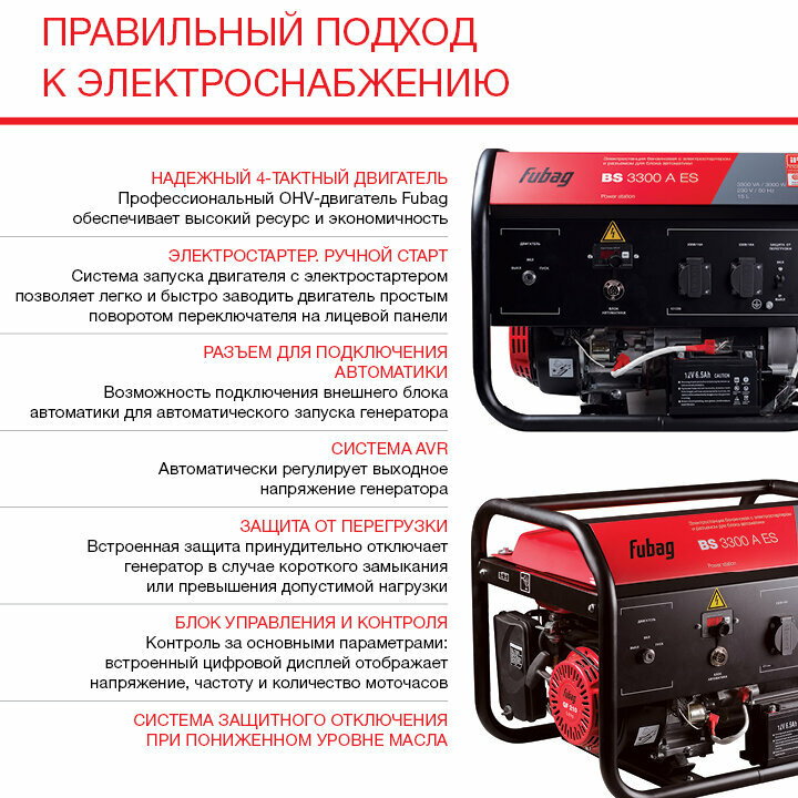 Генератор бензиновый FUBAG BS 3300 A ES, 3 кВт, 220 В интересное:
