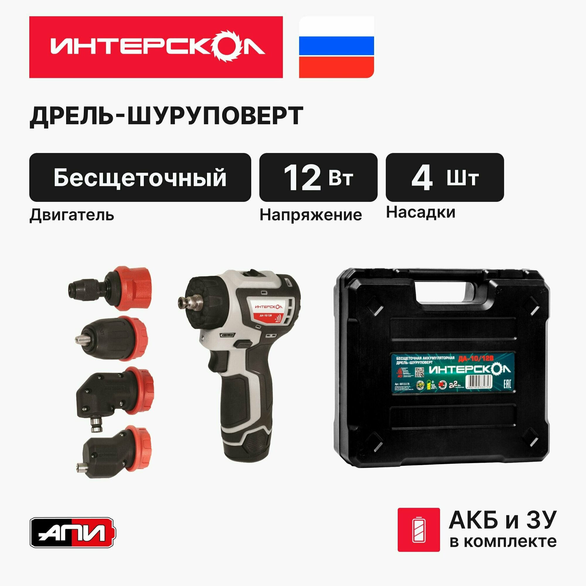 Бесщеточная аккумуляторная дрель-шуруповерт ИНТЕРСКОЛ ДА-10/12В комбимакс (687.2.2.79)