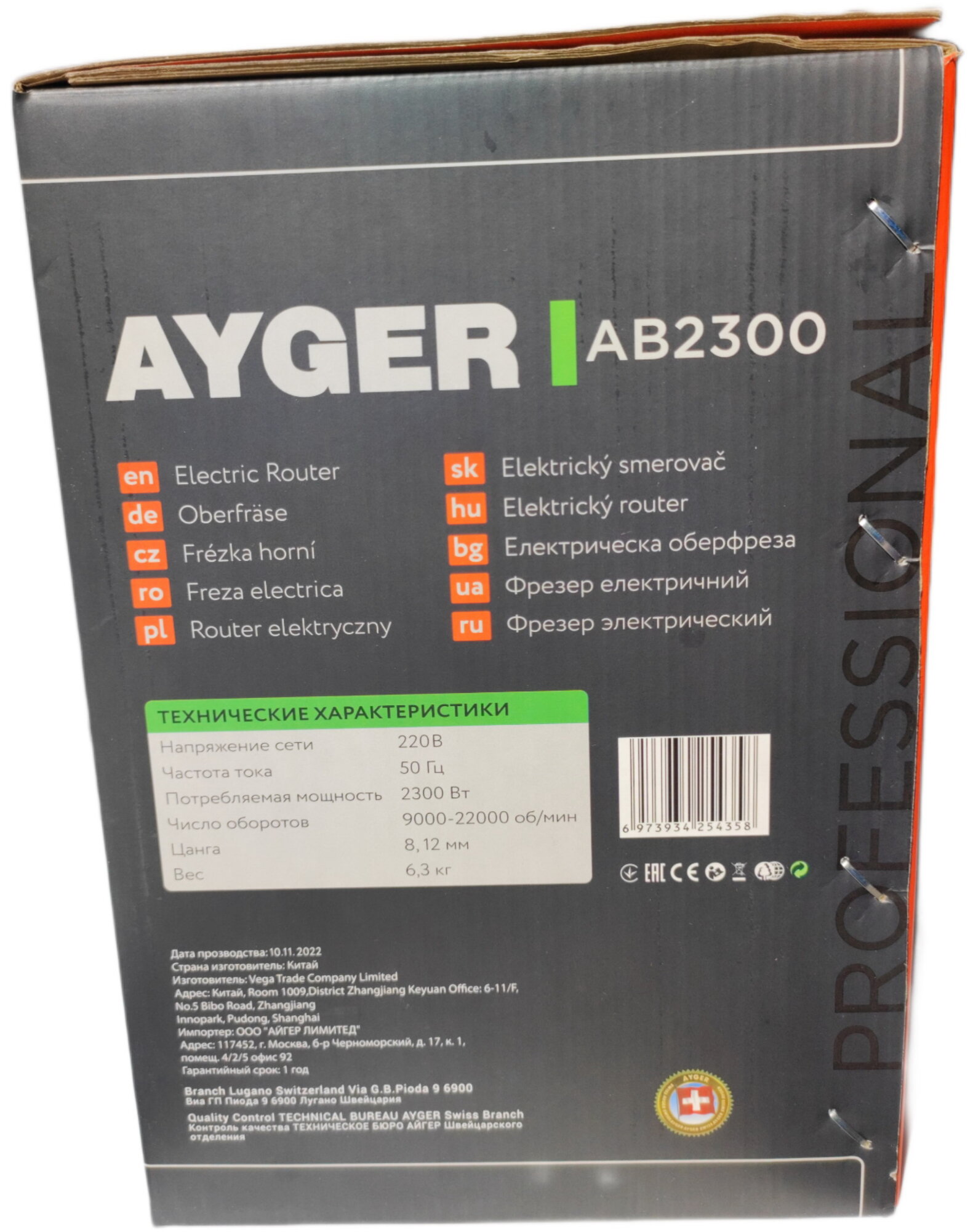 AYGER Фрезер электрический AB2300, шт AYGER