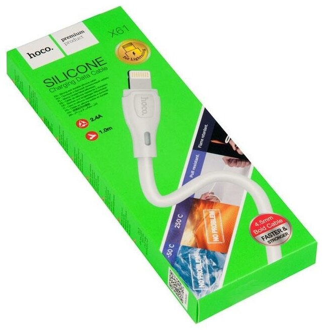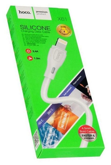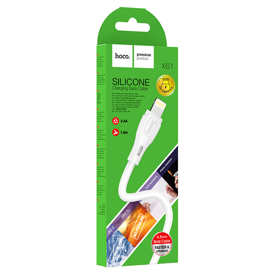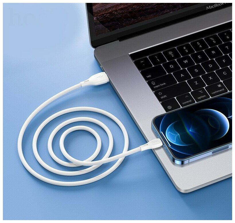 Кабель зарядки и синхронизации данных USB HOCO X61 Ultimate silicone для Lightning, 2.4 A, длина 1.0 м, белый