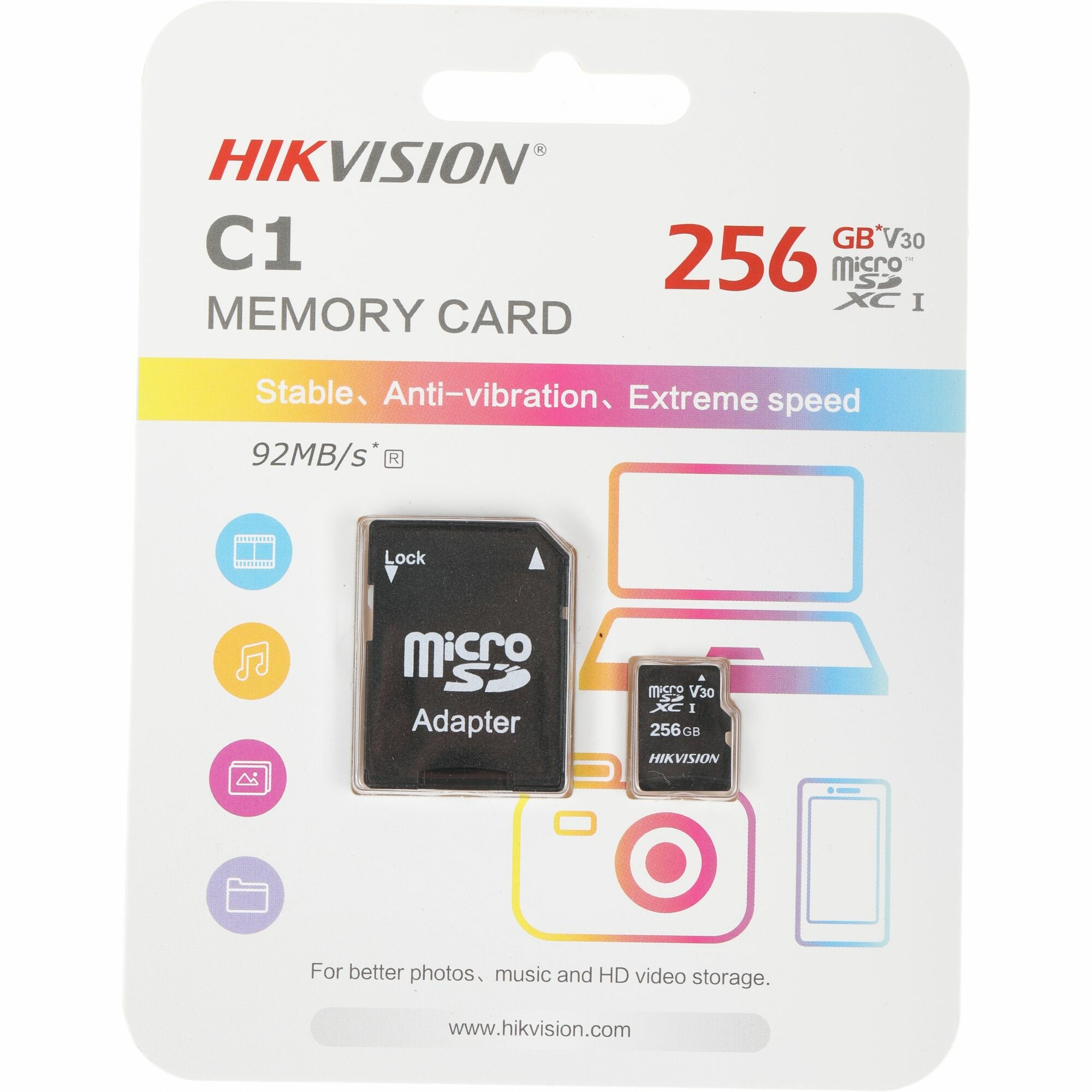 Карта памяти microSDXC Hikvision C1 256 ГБ, 92 МБ/с, Class 10, HS-TF-C1(STD)/256G/Adapter, 1 шт., переходник SD
