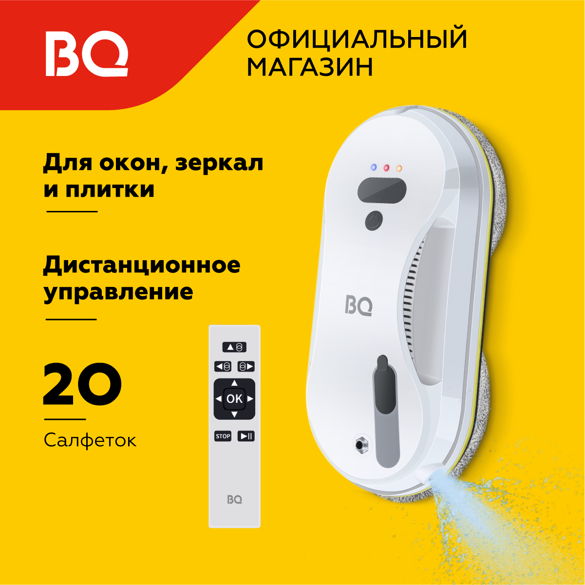 Робот-мойщик окон BQ WR300DS Белый / Двойной модуль распыления / 20 салфеток