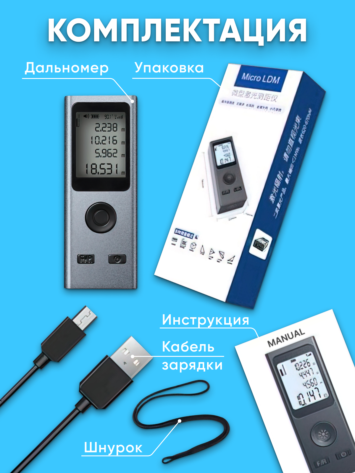 Дальномер лазерный строительный, 2 точки отсчета, 12 функций интересное:
