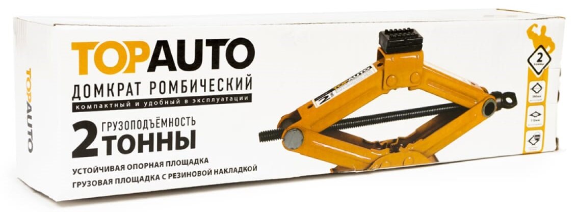 Домкрат автомобильный, TOP AUTO, ромбический 2 тонны, механический, высота подхвата 135 мм, высота подъема 320мм, в сумке, ДР-2