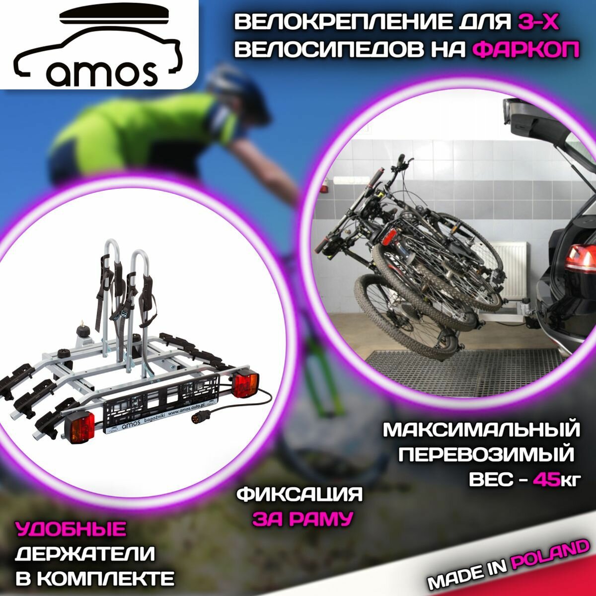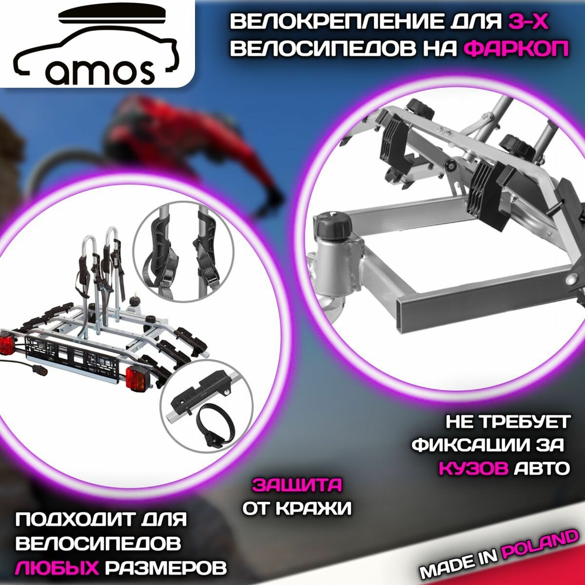 AMOS TYTAN3PLUS АвтозапчастьПлатформа для 3 велосипедов TITAN 3 Amos улучшенные узлы крепления