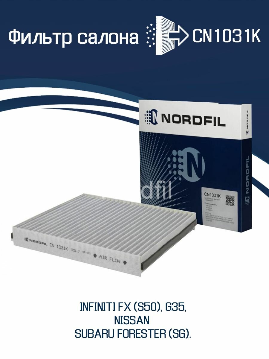 CN1031K NORDFIL Фильтр салона угольный Infiniti FX G35 Nissan Murano Teana X-Trail Subaru Forester (SG)