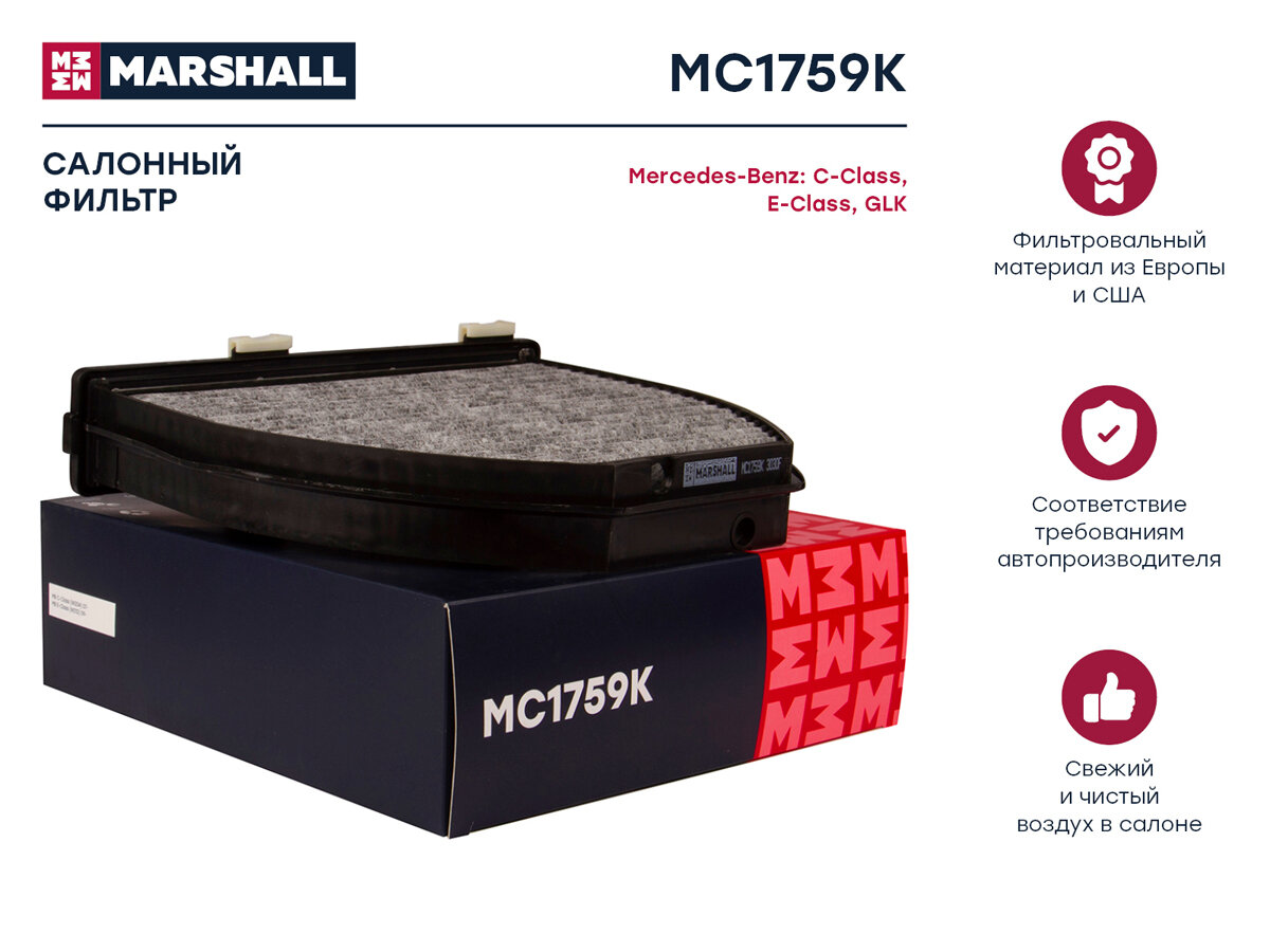 Купить Фильтр салонный угольный MB C-Class (W204) 07- / E-Class (W212) 09- / GLK (X204) 08- (MC1759K), Marshall MC1759K