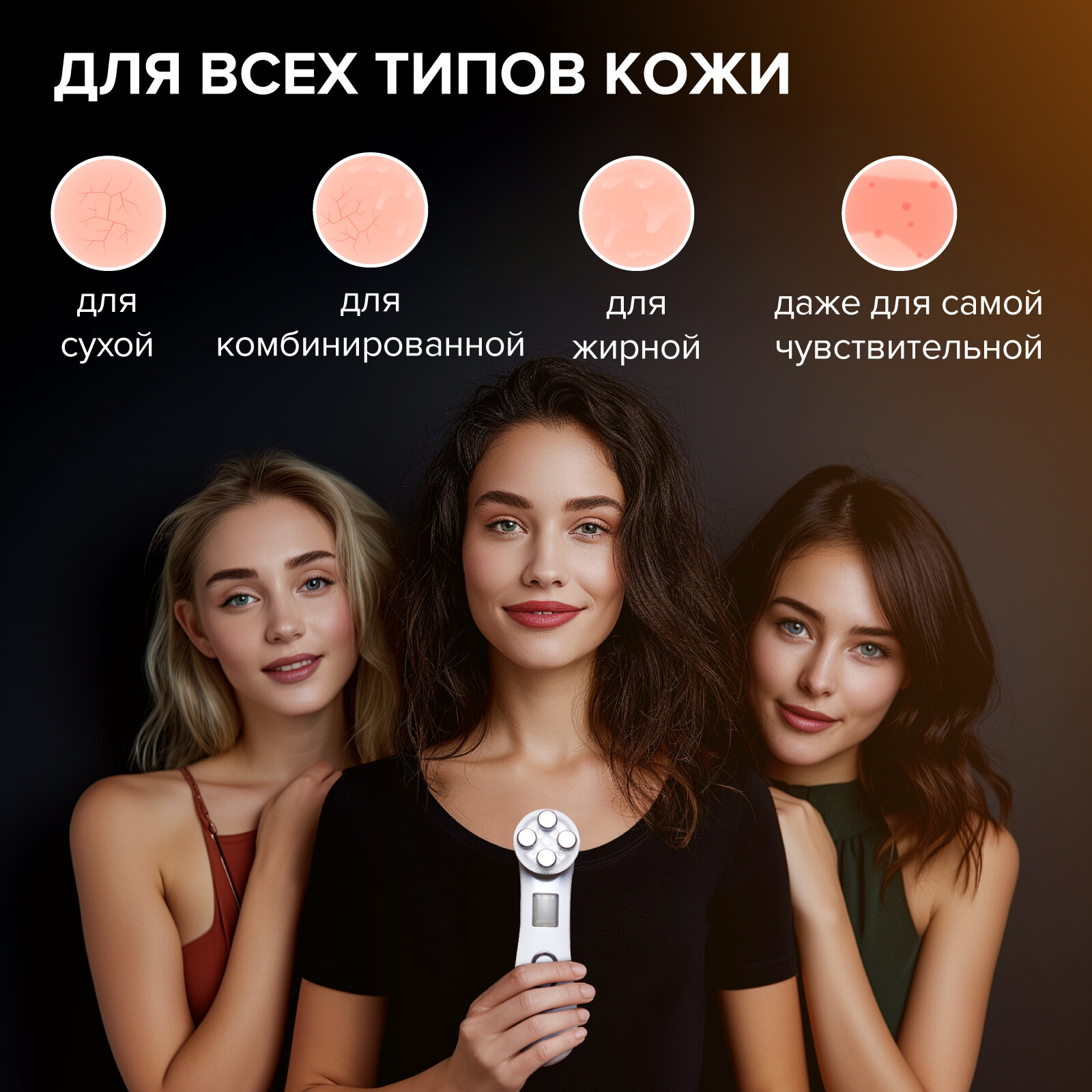 Лифтинг аппарат для мезотерапии HoneyCare, косметологический аппарат Rf лифтинг, для лица от морщин 4 в 1, массажер мезотерапия лица без иглы. Подарок на Новый Год.