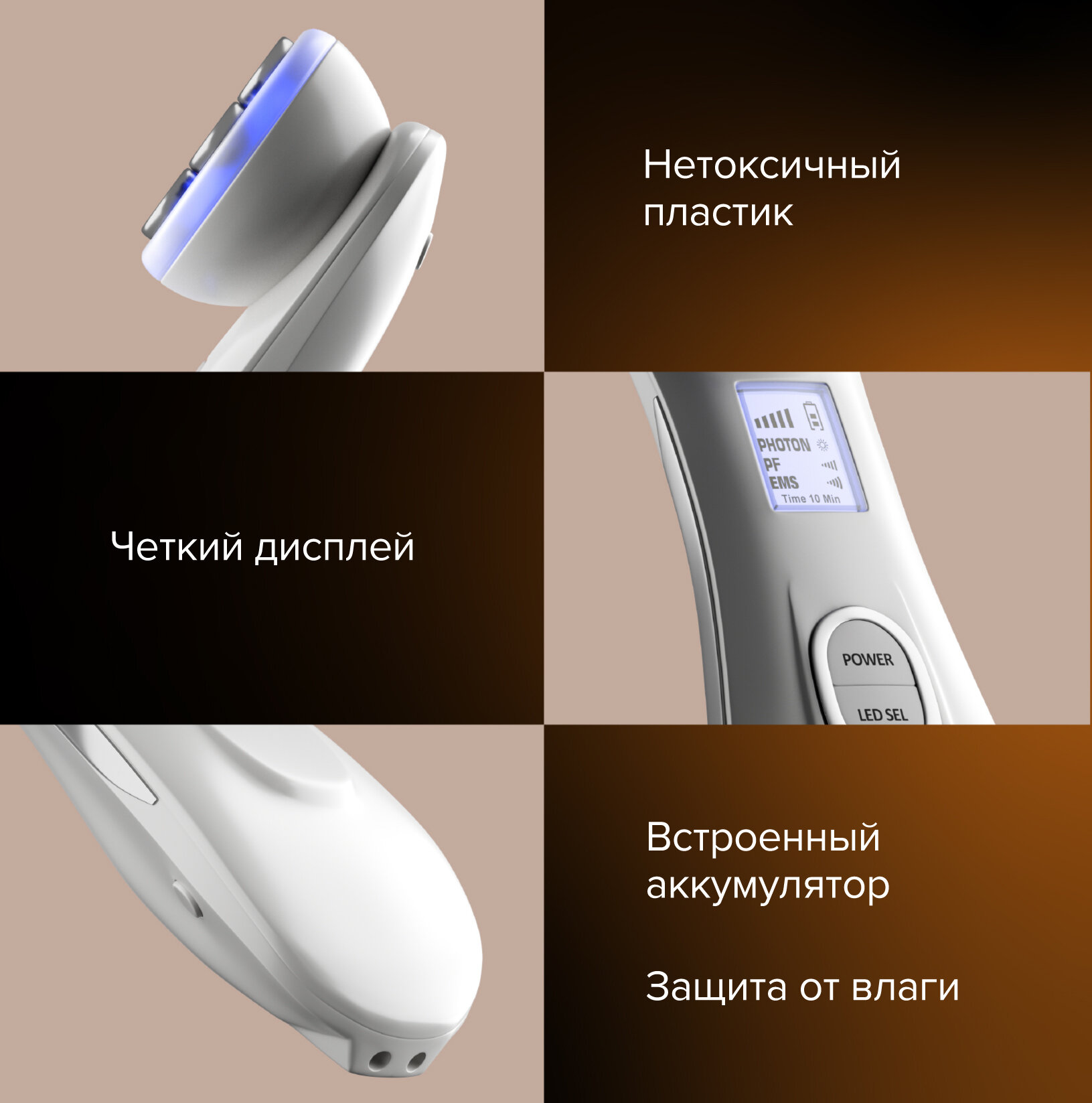 | Принцип работы | RF-лифтинг / миостимуляция / светотерапия / электропорация |