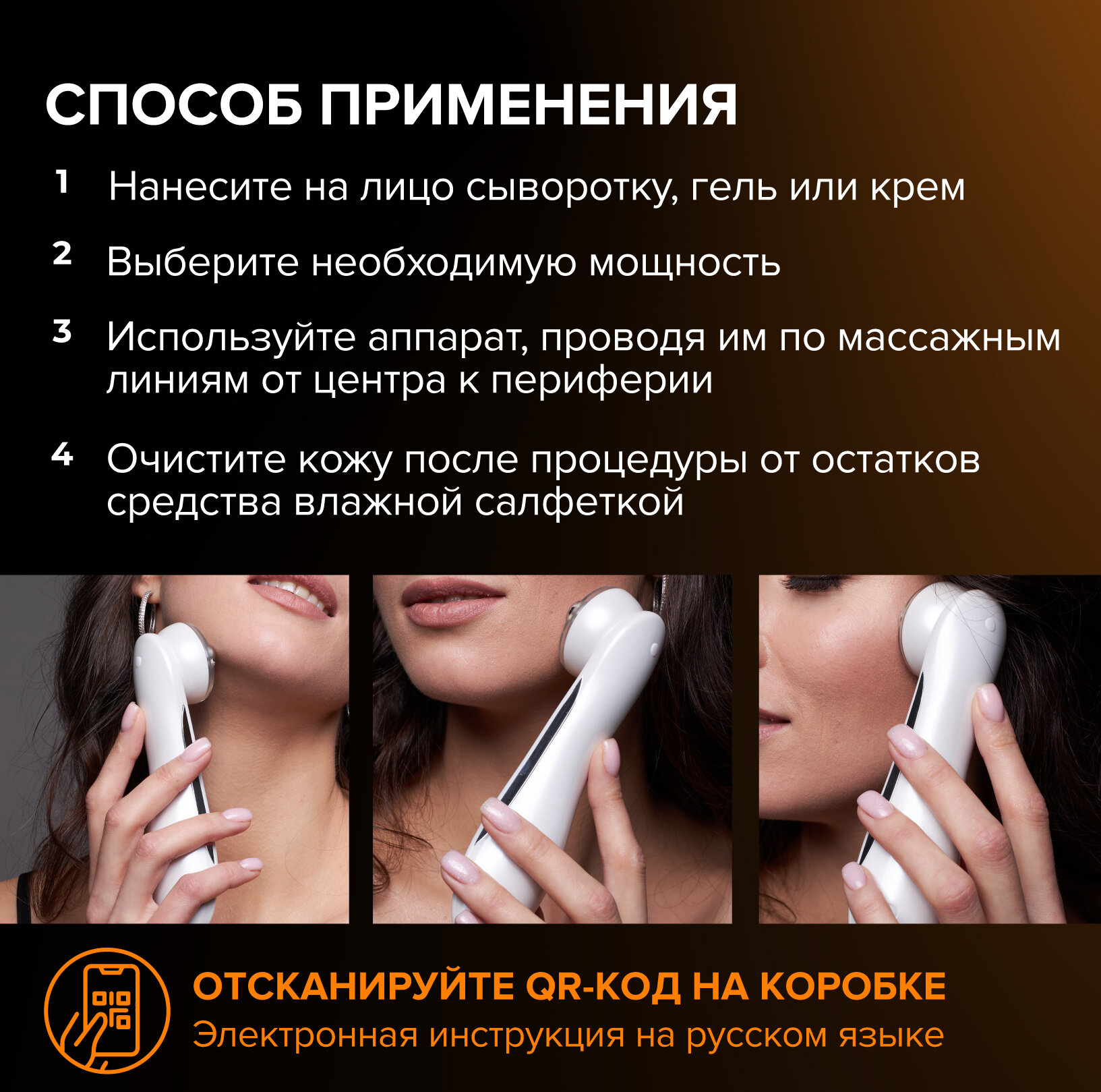 | Комплектность | Аппарат для мезотерапии 4 в 1, подставка, зарядное устройство, инструкция по QR-коду |