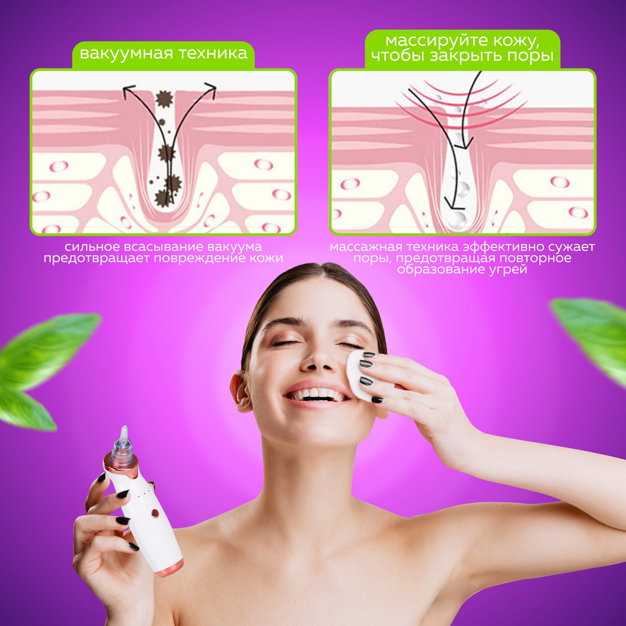 Вакуумный очиститель пор, чистка лица, аппарат от черных точек, прыщей, очищения кожи от акне, угрей