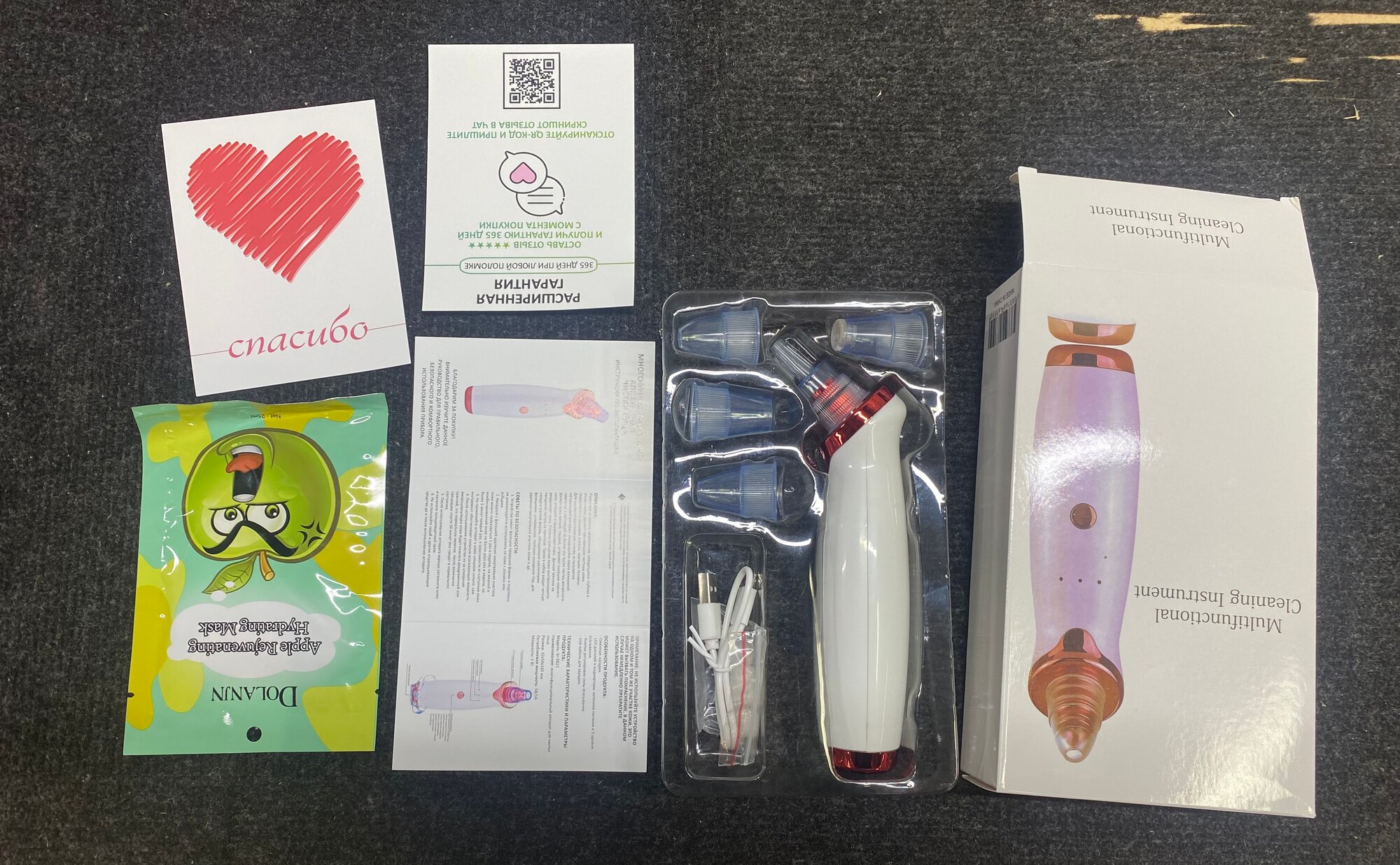 | Плюсы: | в подарок положили комплект инструментов для чистки. прибор -отдичный пылесосище для лица) |