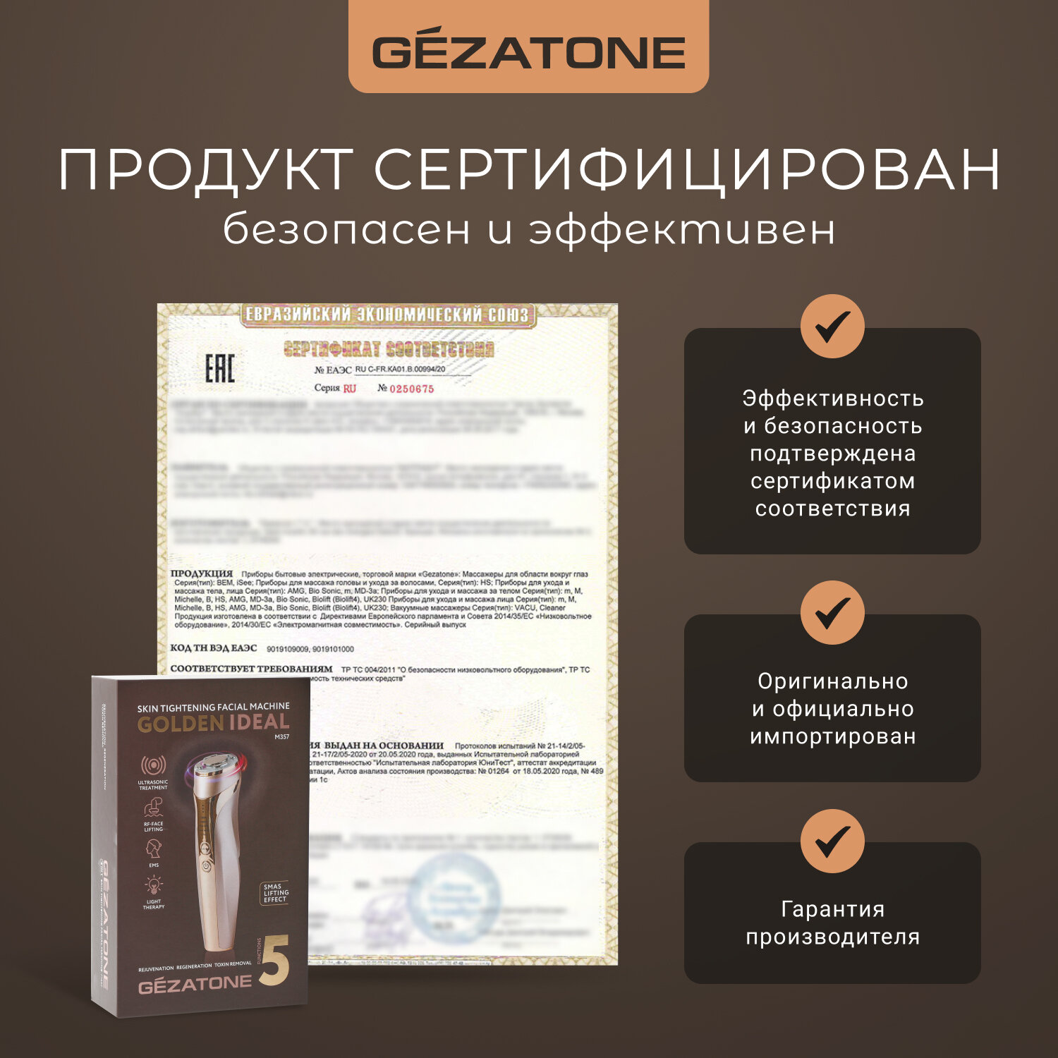 Gezatone, Ультразвуковой лифтинг массажер для лица 5-в-1 с rf лифтингом, миостимуляцией и вибромассажем m357, хромотерапией интересное: