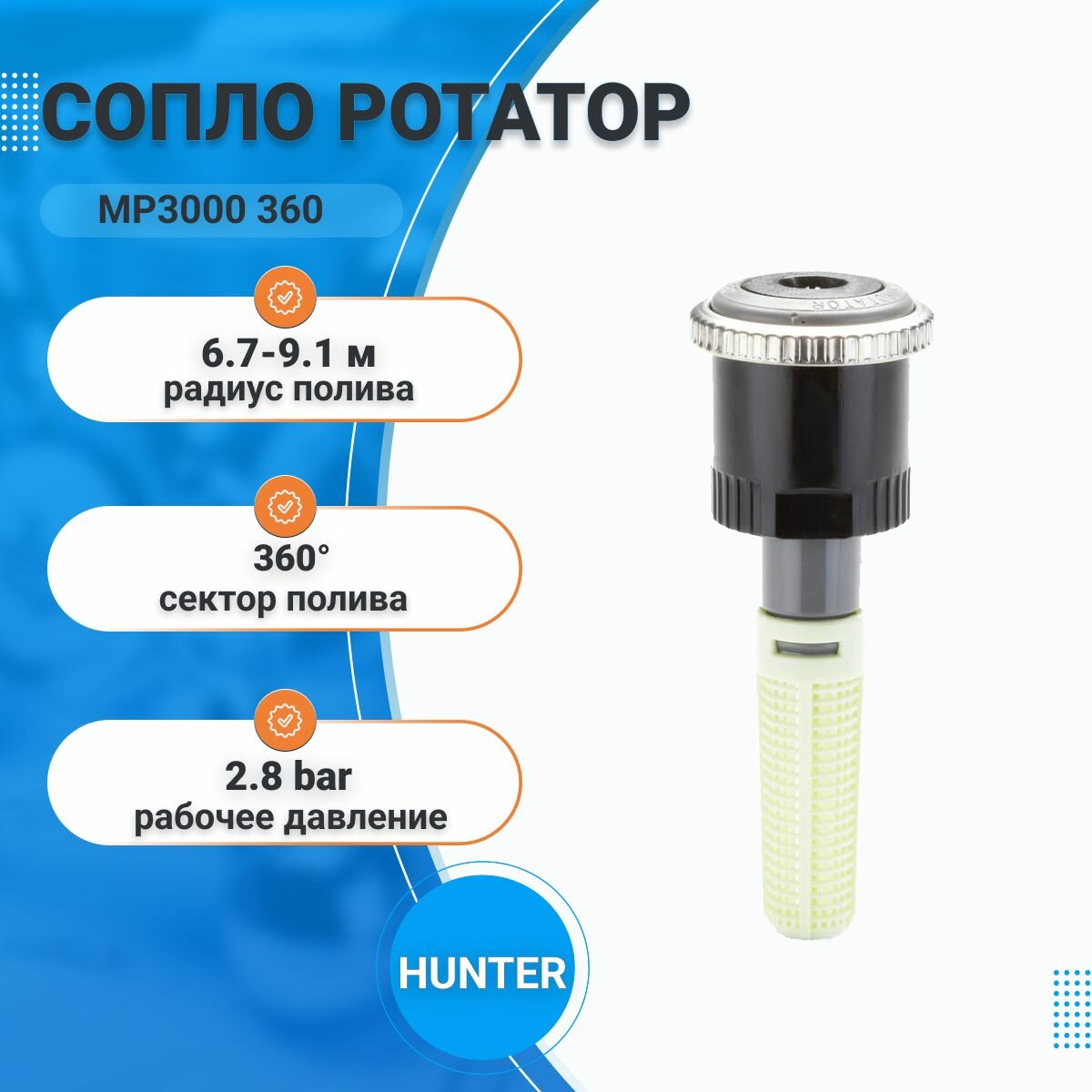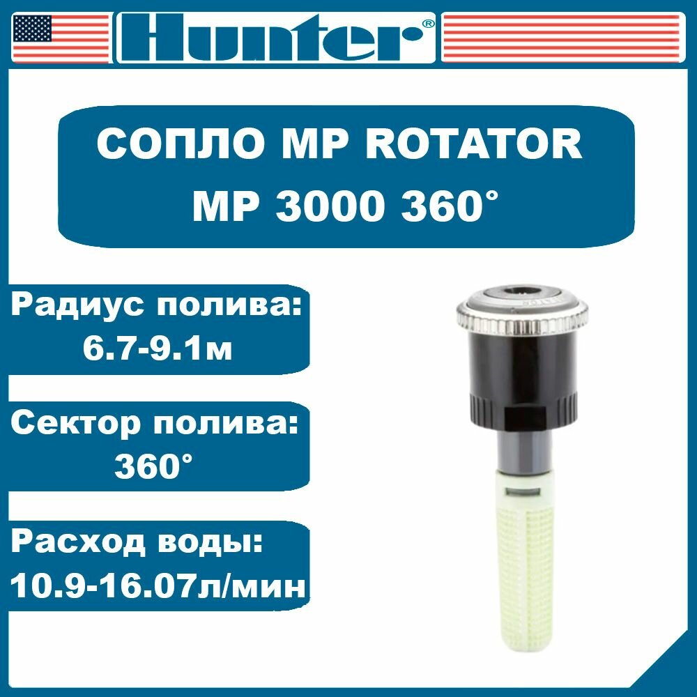 Форсунка Hunter MP Rotator MP3000 сектор 360 градусов, радиус 6,7 - 9,1 м интересное: