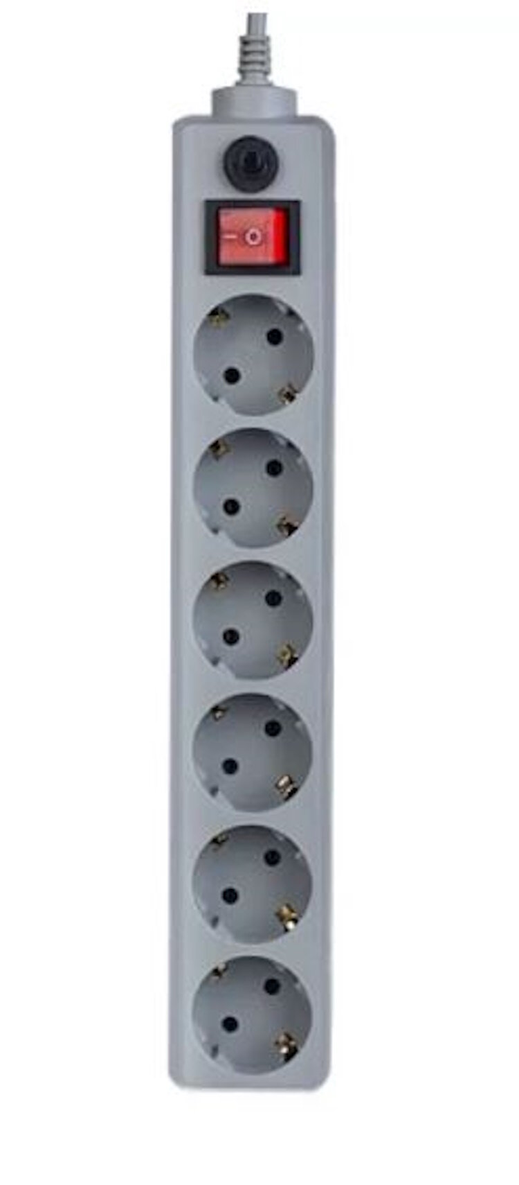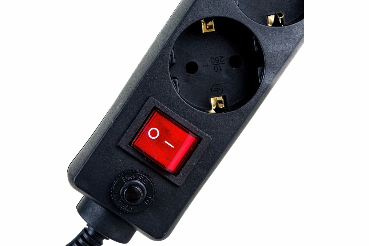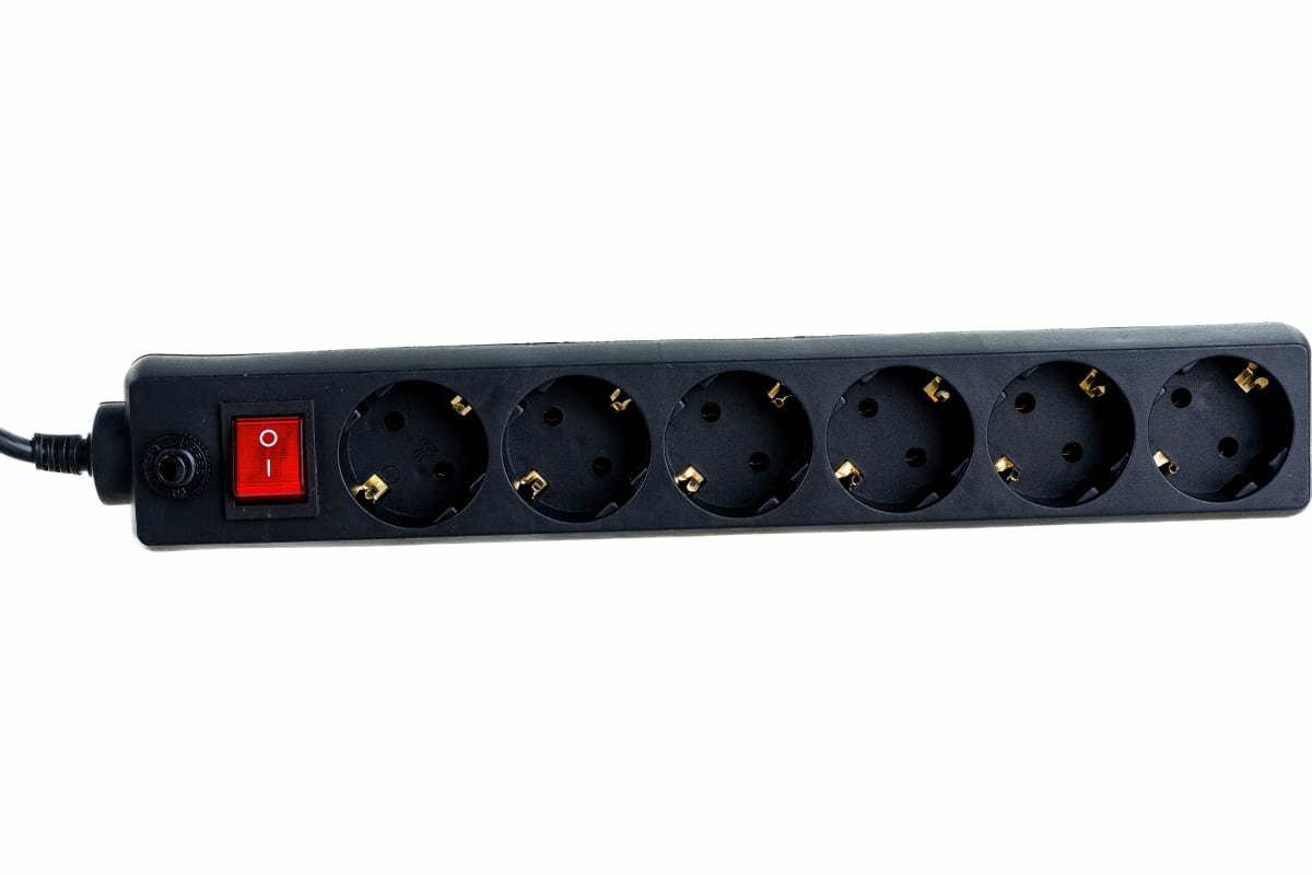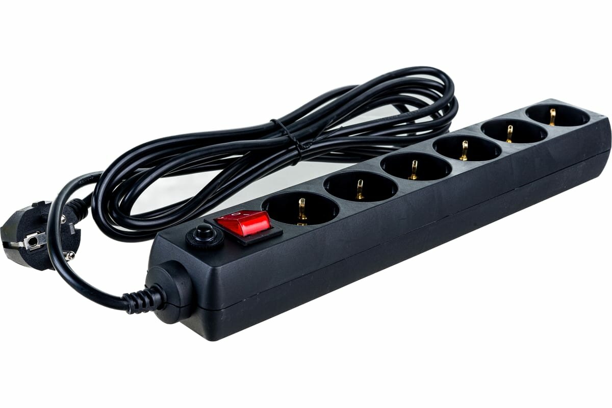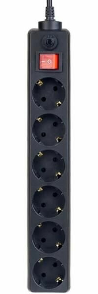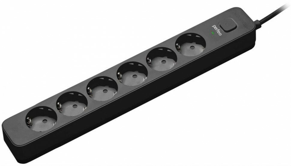 Сетевой фильтр с заземлением и кнопкой Perfeo Power+, 3 м, 6 розеток (черный)