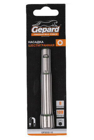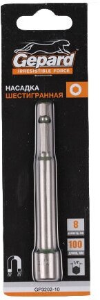 Насадка шестигранная магнитная 6х65мм GEPARD (GP3200-65) (Hex Shank Hexagon бита с торцевой головкой сталь магнитная)