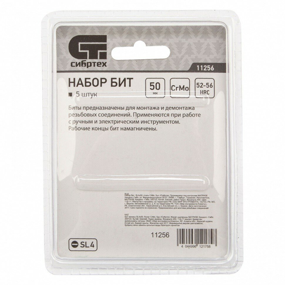 СИБРТЕХ Набор бит SL4 x 50, сталь CrMo, 5 шт Сибртех, ( 11256 ) интересное: