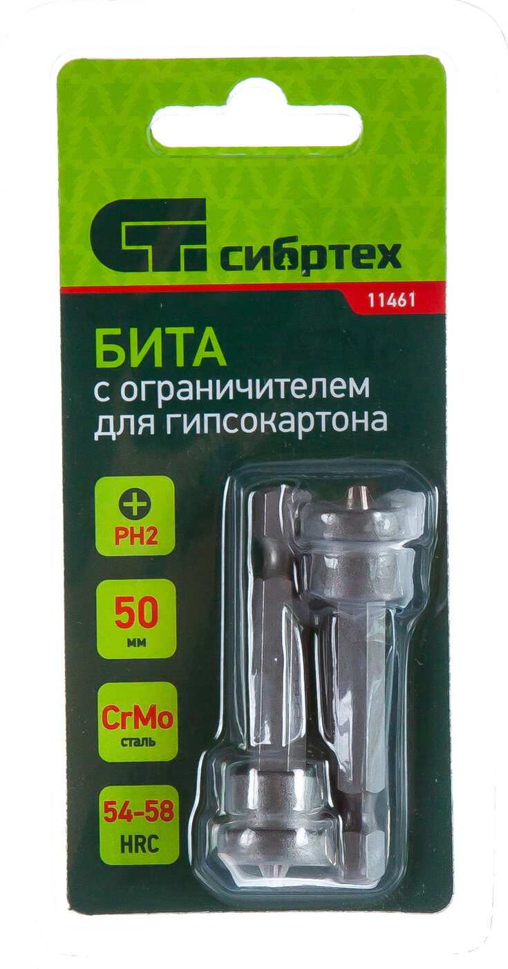 Бита Сибртех PH2x50 мм с ограничителем для ГКЛ 2 шт, CrMo 11461