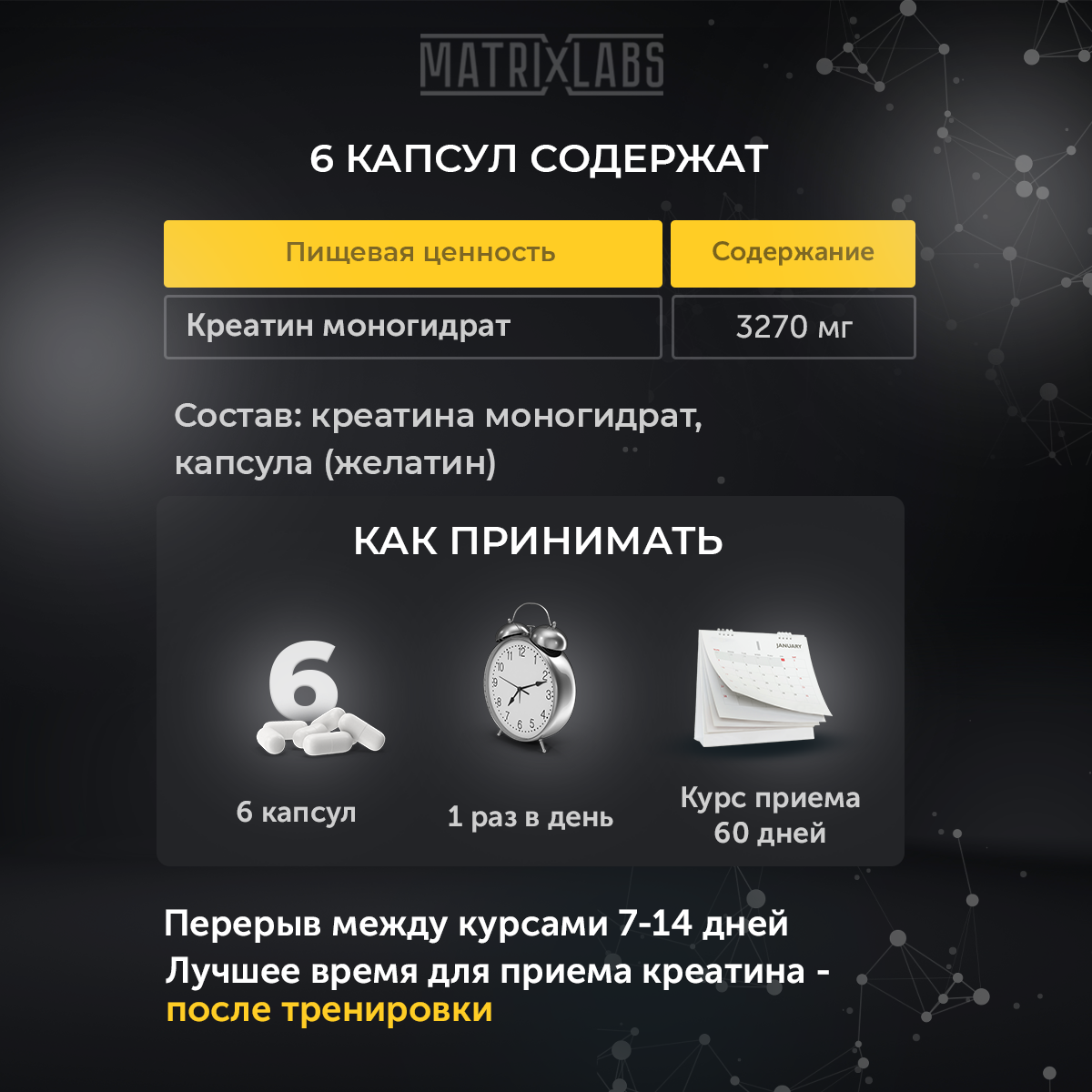 Креатин моногидрат 100% 120 капсул Matrix Labs/creatine/ спортивное питание для наращивания мышечной массы интересное: