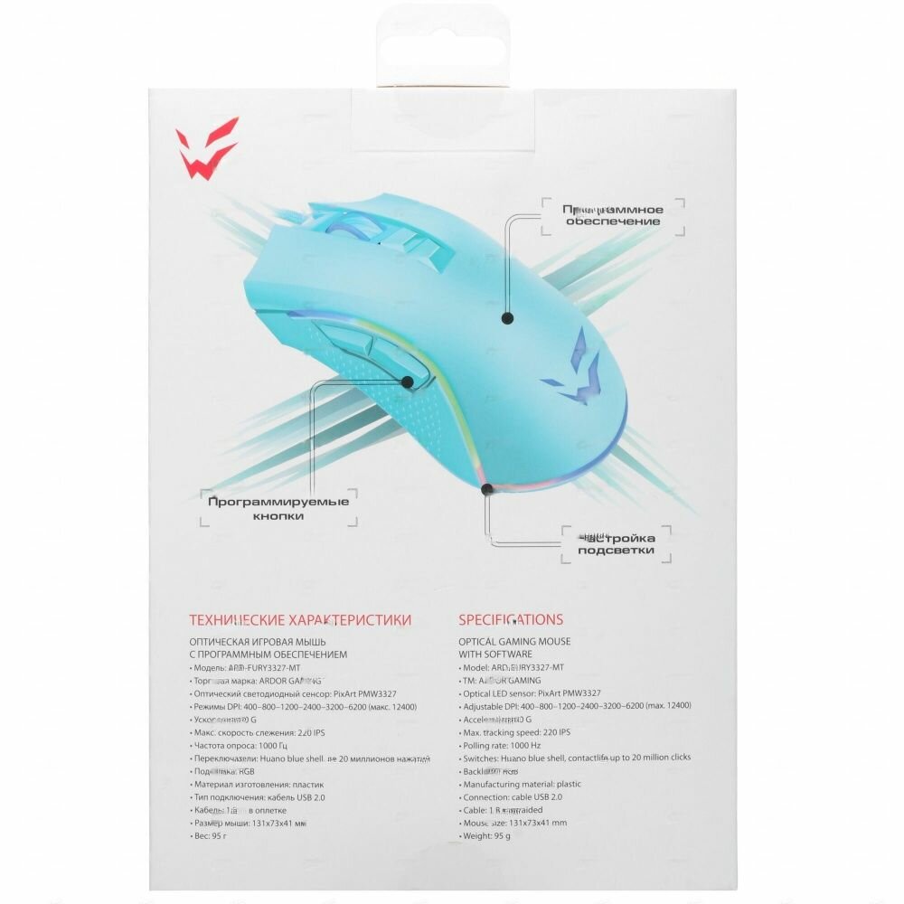 Мышь проводная ARDOR GAMING Fury [ARD-FURY3327-WT] (12400 dpi, USB Type-A) белый