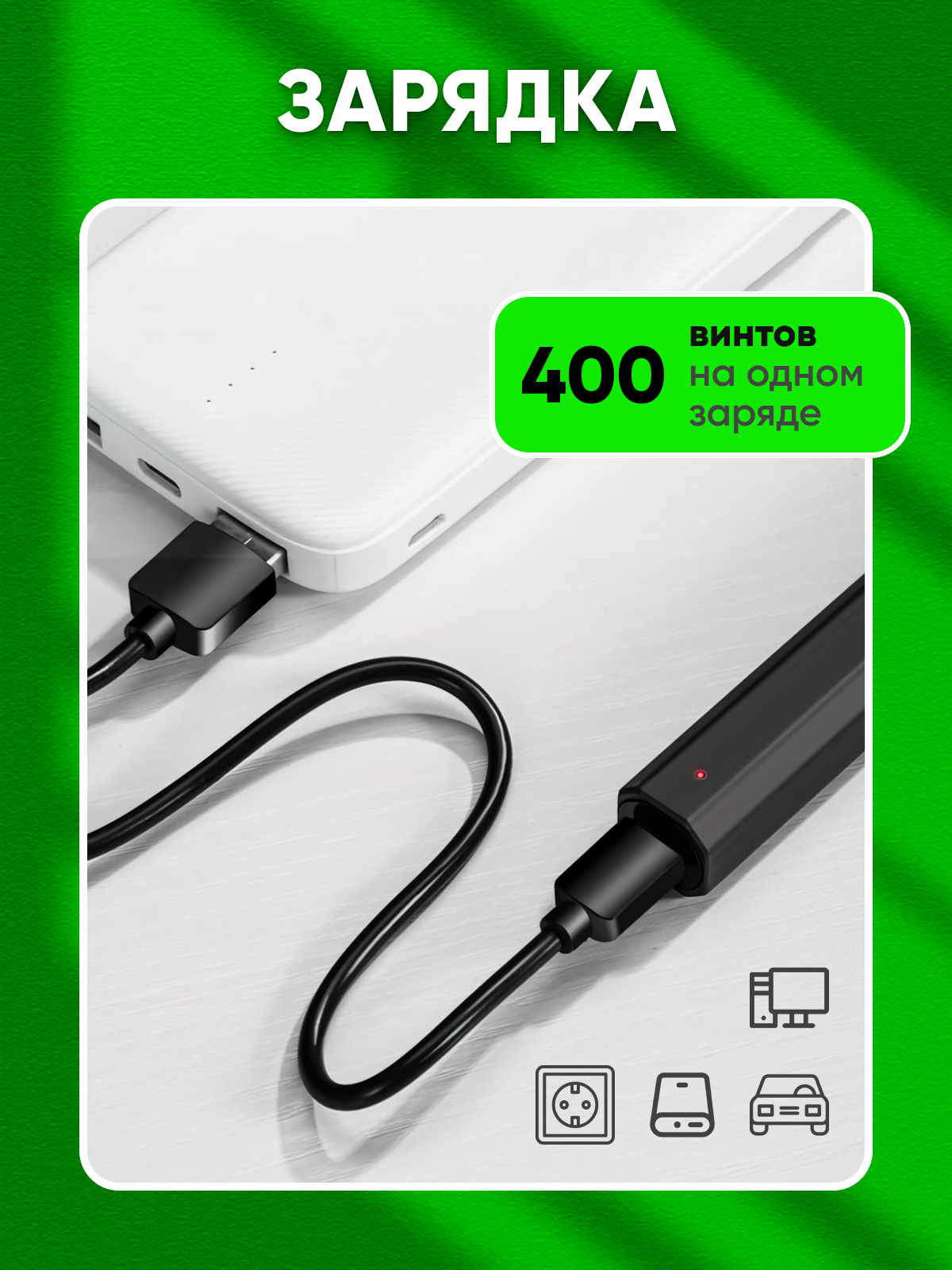 Отвертка с набором бит аккумуляторная электрическая, микро-USB разъем
