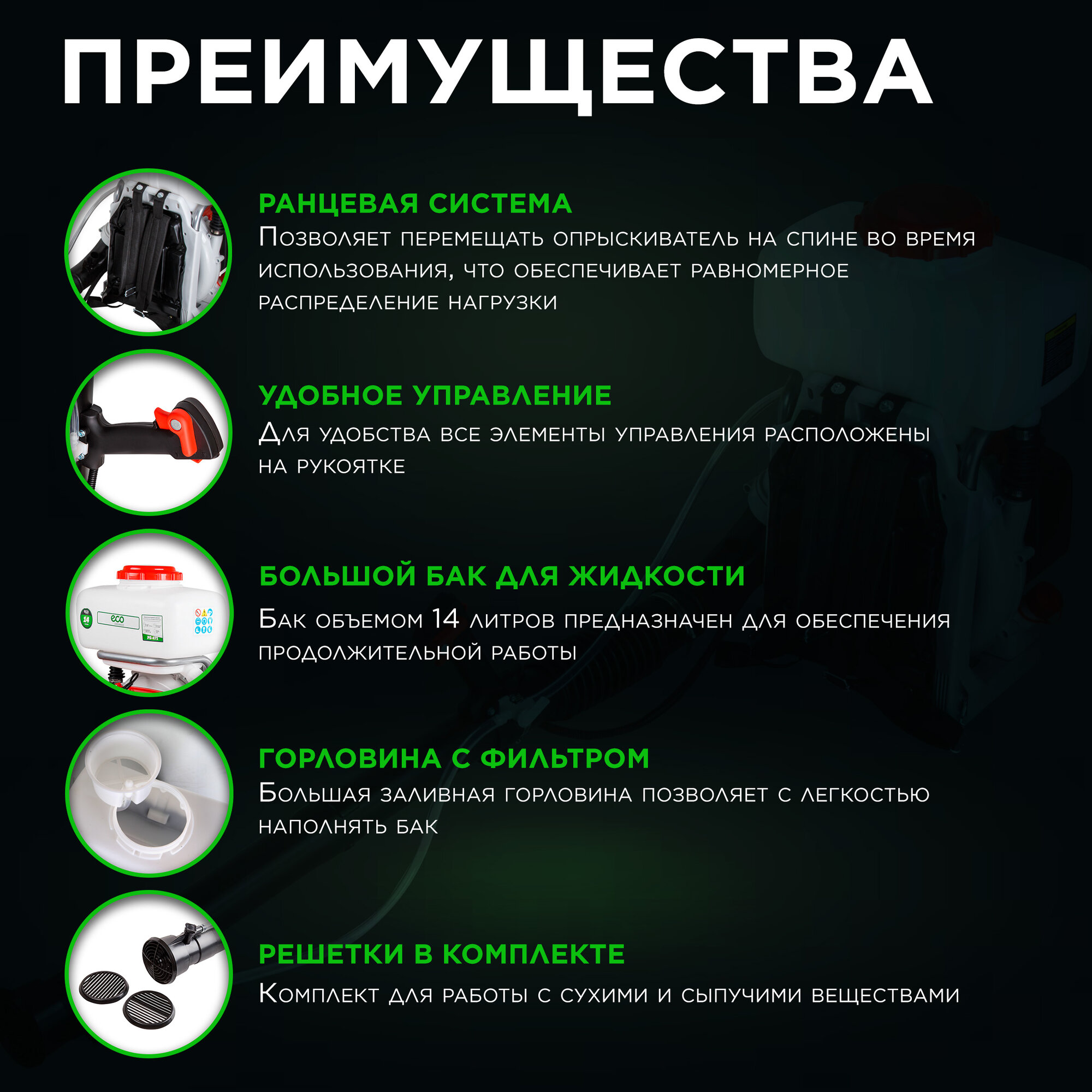 Опрыскиватель садовый бензиновый ранцевый ECO PS-471 (EC1568-4) интересное: