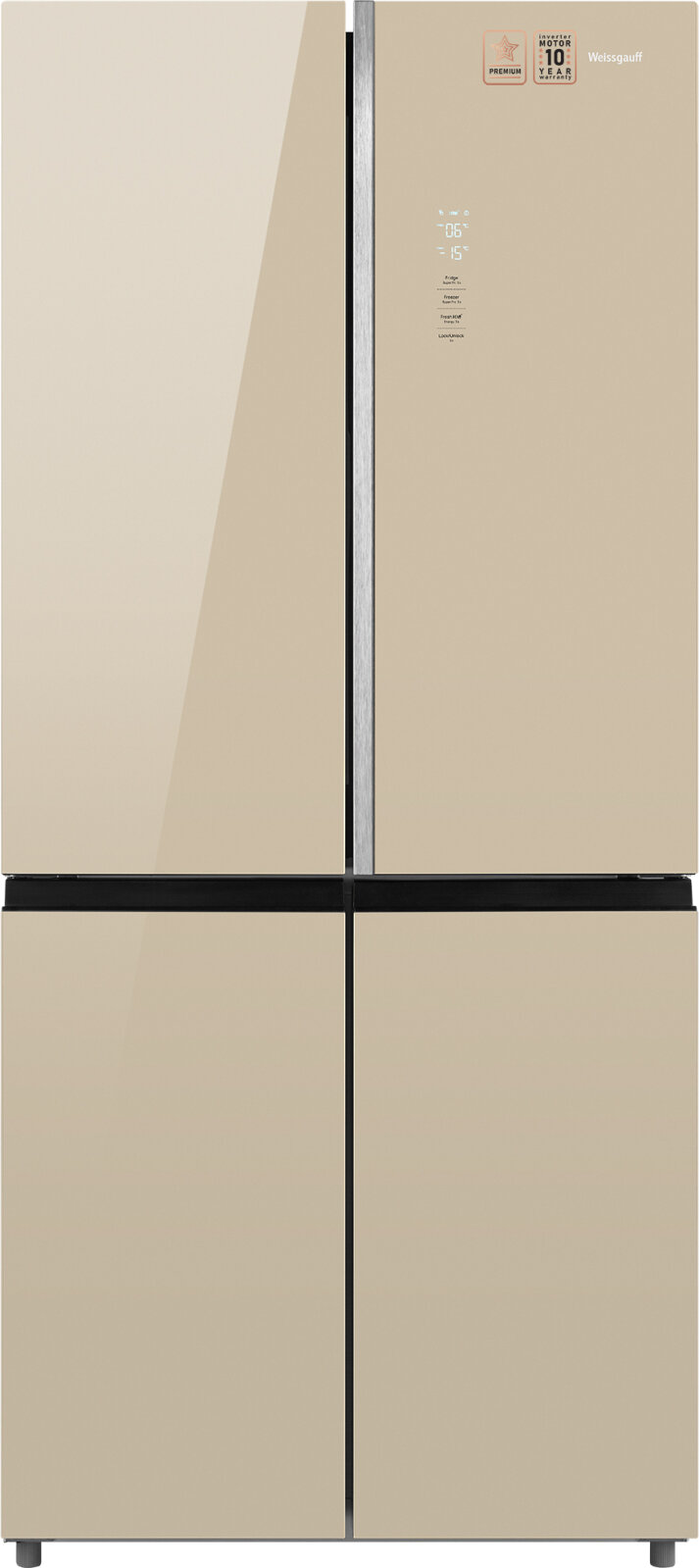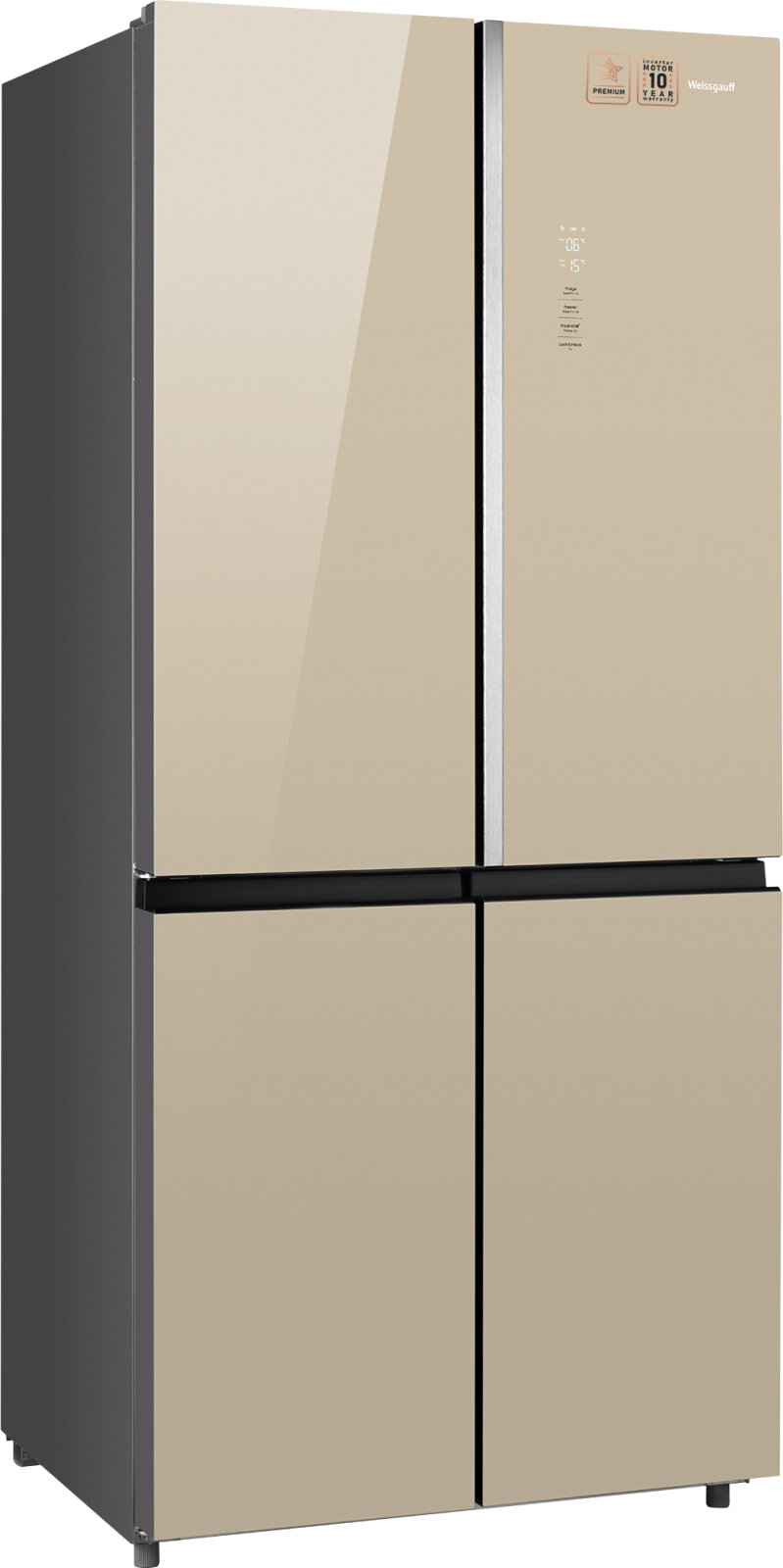 Отдельностоящий холодильник с инвертором Weissgauff WCD 590 Nofrost Inverter Premium Ecofresh Gold Glass 3 года гарантии, суперзаморозка, суперохлаждение, Инновационная система Metal-Tech Cooling