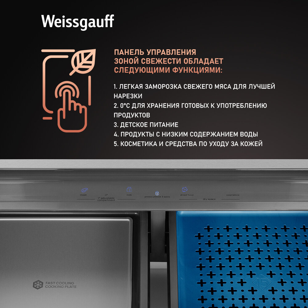 Холодильник side by side Weissgauff WCD 590 Nofrost Inverter Premium Biofresh Inox