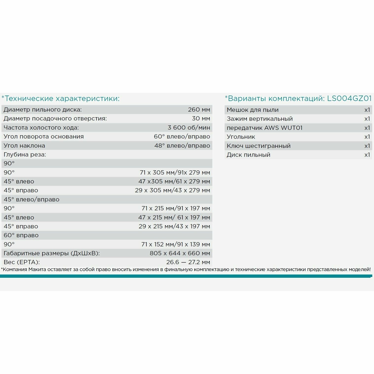 Аккумуляторная торцовочная пила консольного типа LS004GZ01