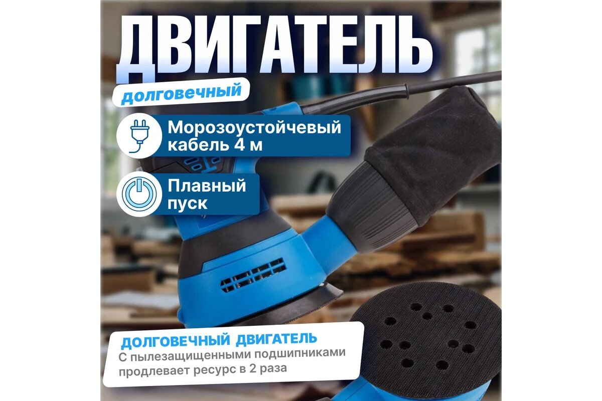 | Комплектация | эксцентриковая шлифмашина, пылесборный мешок, шлифовальный лист 125 мм, инструкция |
