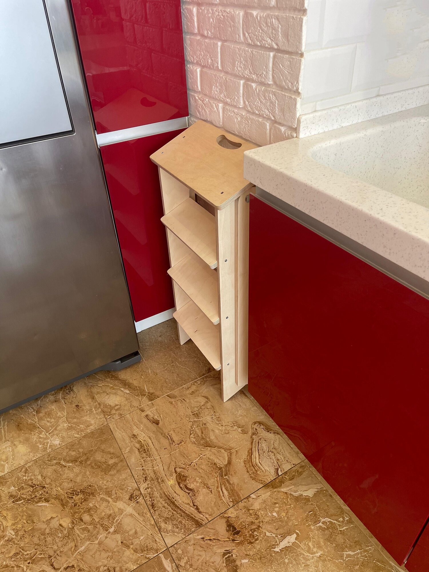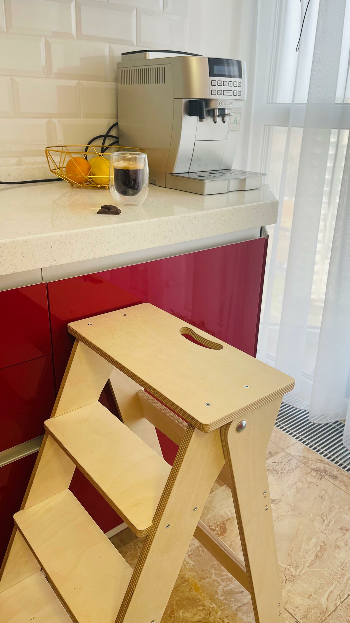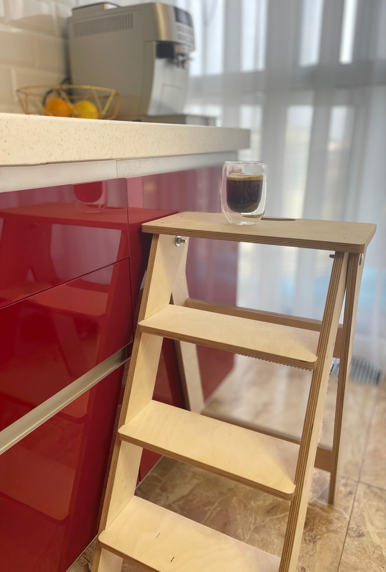 | Плюсы: | Очень милая красивая стремянка и супер быстро и легко собирается |