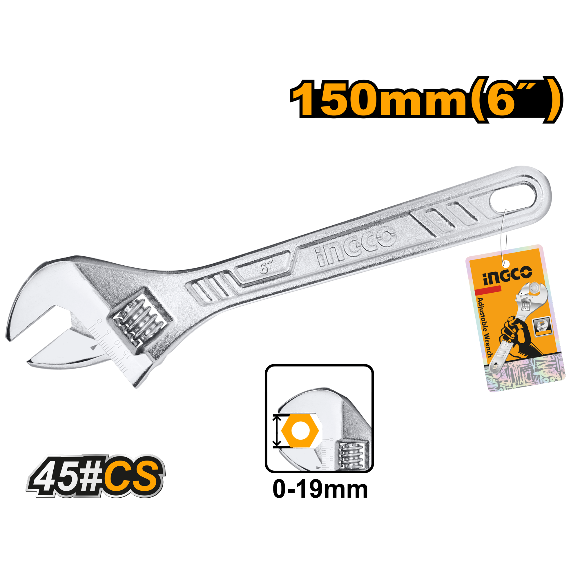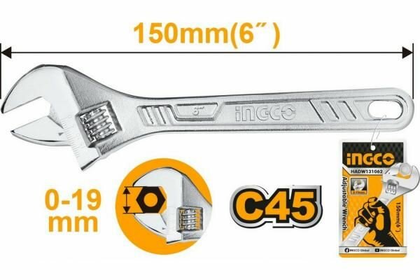 Ключ разводной INGCO 150 мм (0-19 мм)