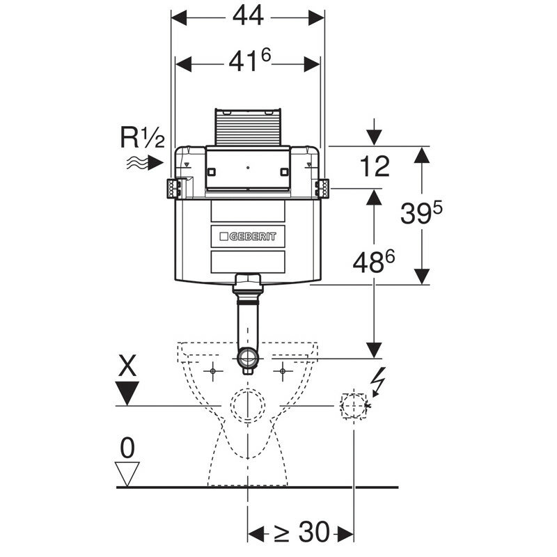 Смывной бачок скрытого монтажа, Geberit, Omega, для унитаза, 440*980
