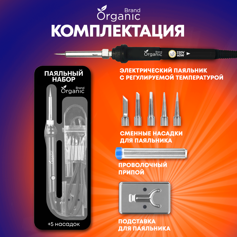 Паяльник электрический Organic Brand с регулировкой температуры, 22 предмета