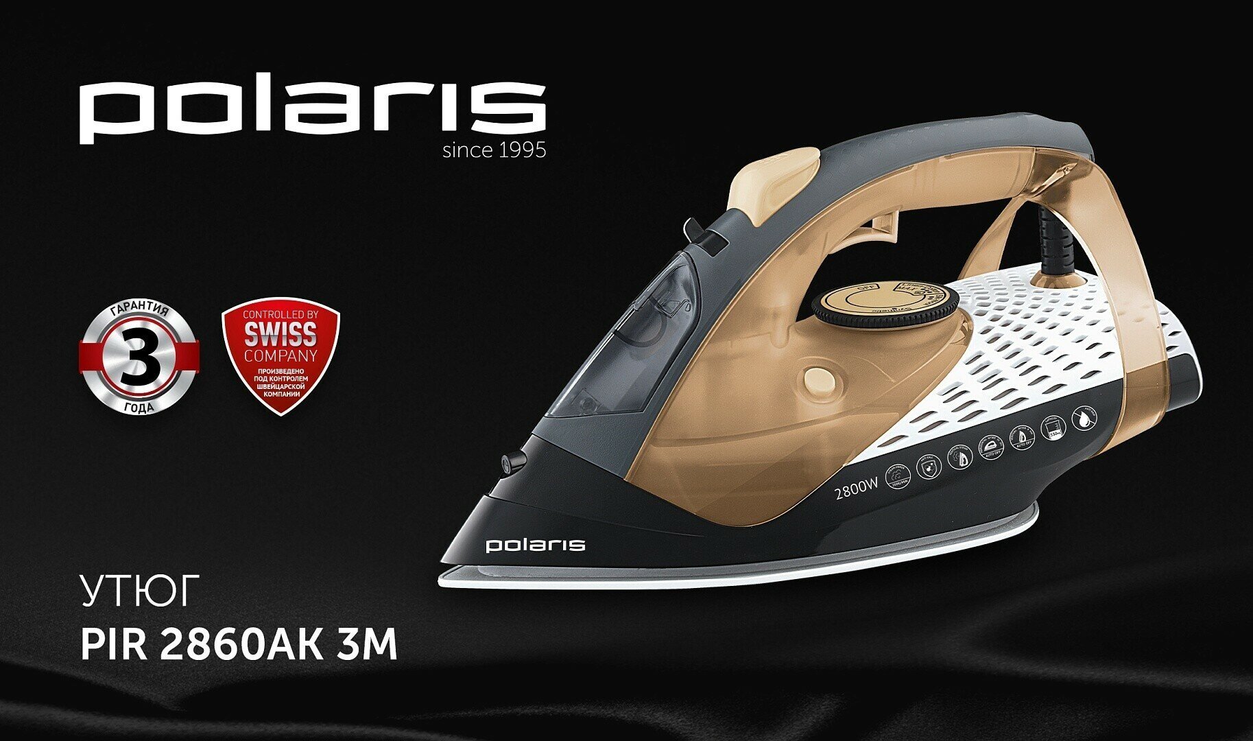 Утюг Polaris PIR 2860AK, черно-золотой