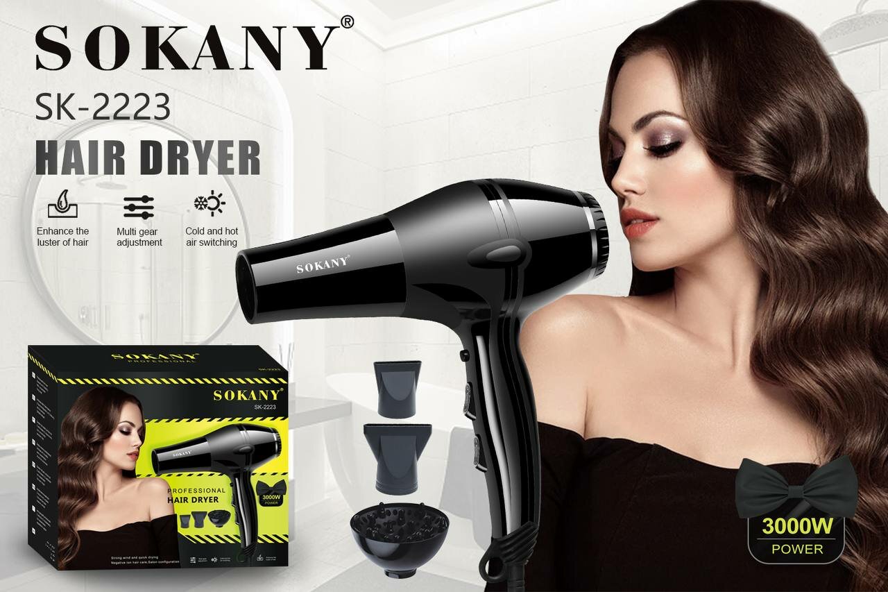 Купить Фен SK-2223 SOKANY 3000Вт 2скор.+хол. воздух пластик черный