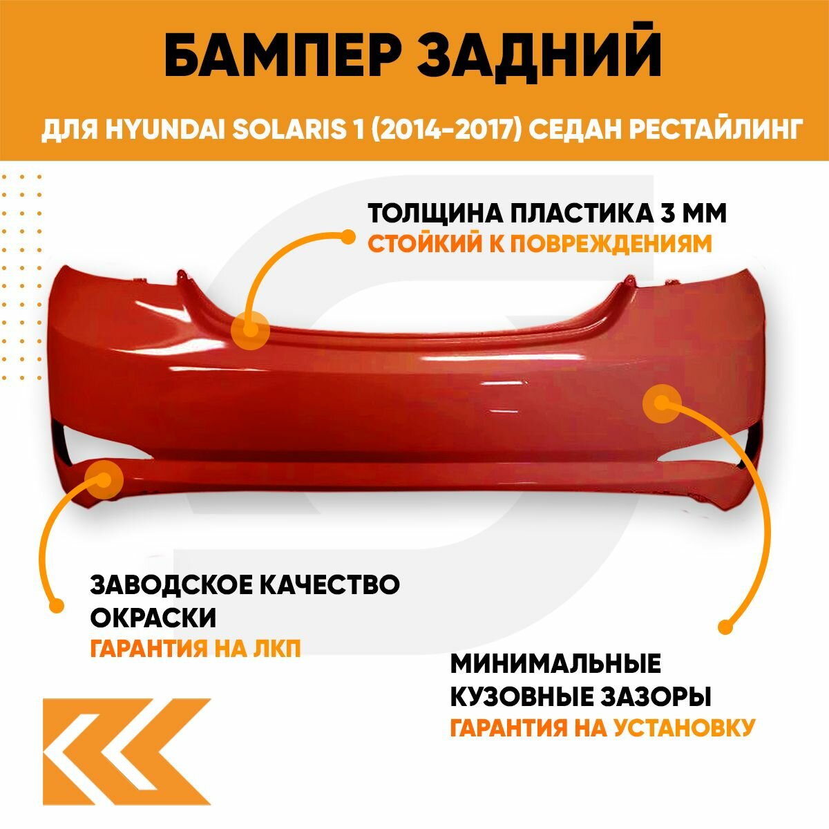 Купить Бампер задний в цвет кузова для Хендай Солярис 1 Hyundai Solaris 1 (2014-2017) седан TDY - CHARMING RED -Красный