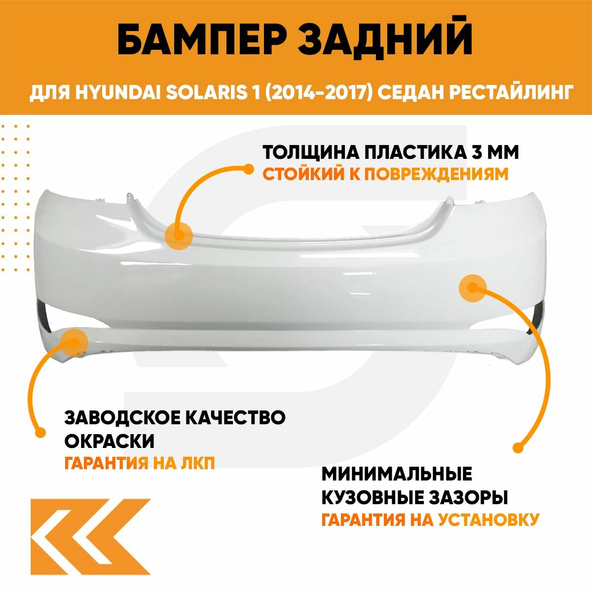 Купить Бампер задний в цвет кузова для Хендай Солярис 1 Hyundai Solaris 1 (2014-2017) седан PGU - WHITE CRYSTAL - Белый