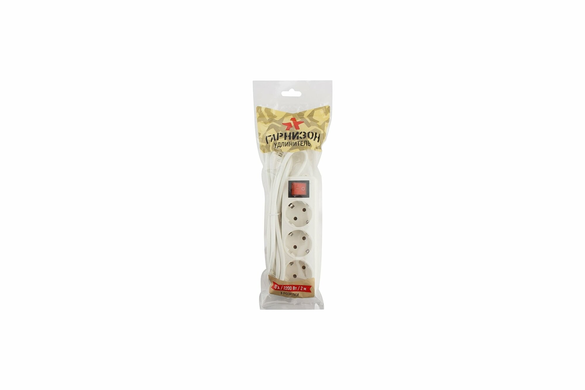 Купить Удлинитель Гарнизон EL-NB-G3-W-2. 3 евророзетки с выключателем и заземлением, допустимый ток 10 А, длина 2 м