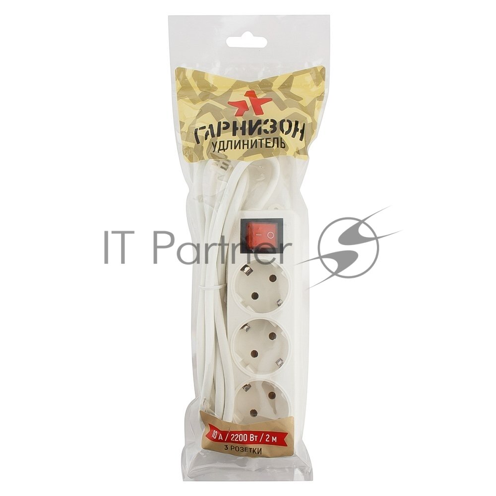 Удлинитель Гарнизон Гарнизон EL-NB-G3-W-2, 3 розетки, 10А, 2м, с выключателем и заземлением, белый