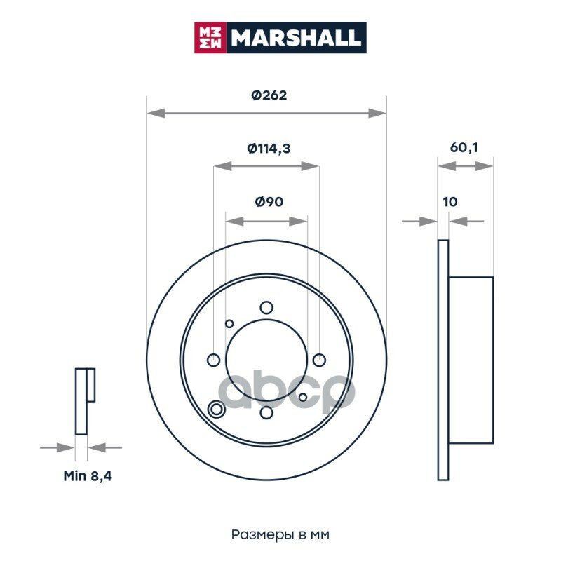 Диск тормозной Mitsubishi Lancer VII (CS) 00-, Galant V-VI 96- задний 262 х 10 Marshall MARSHALL M2000428 | цена за 1 шт
