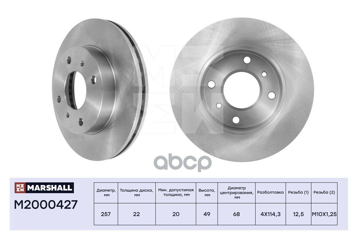 Тормозной Диск Передн. MARSHALL арт. M2000427