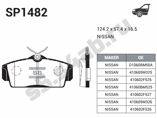Колодки тормозные передние SP1482 для NISSAN ALMERA N16 2000- , PRIMERA P11 16V 1996-02 (с ABS)