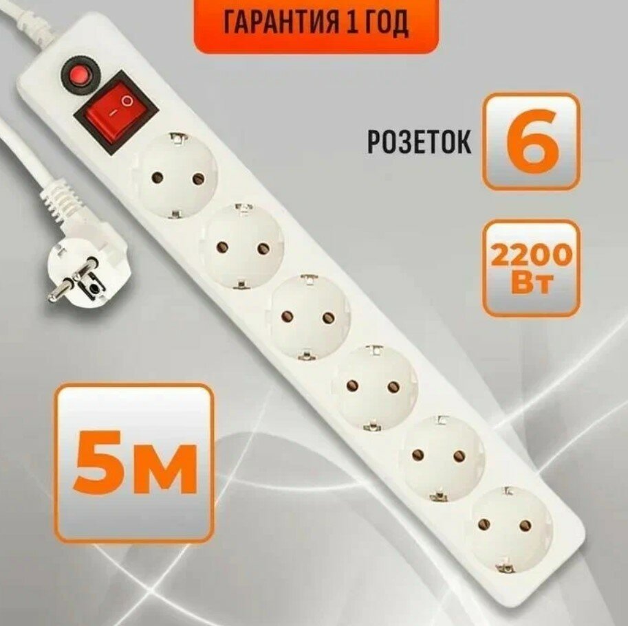 Сетевой фильтр Гарнизон ЕН15 - 6 розеток белый, 5 метров