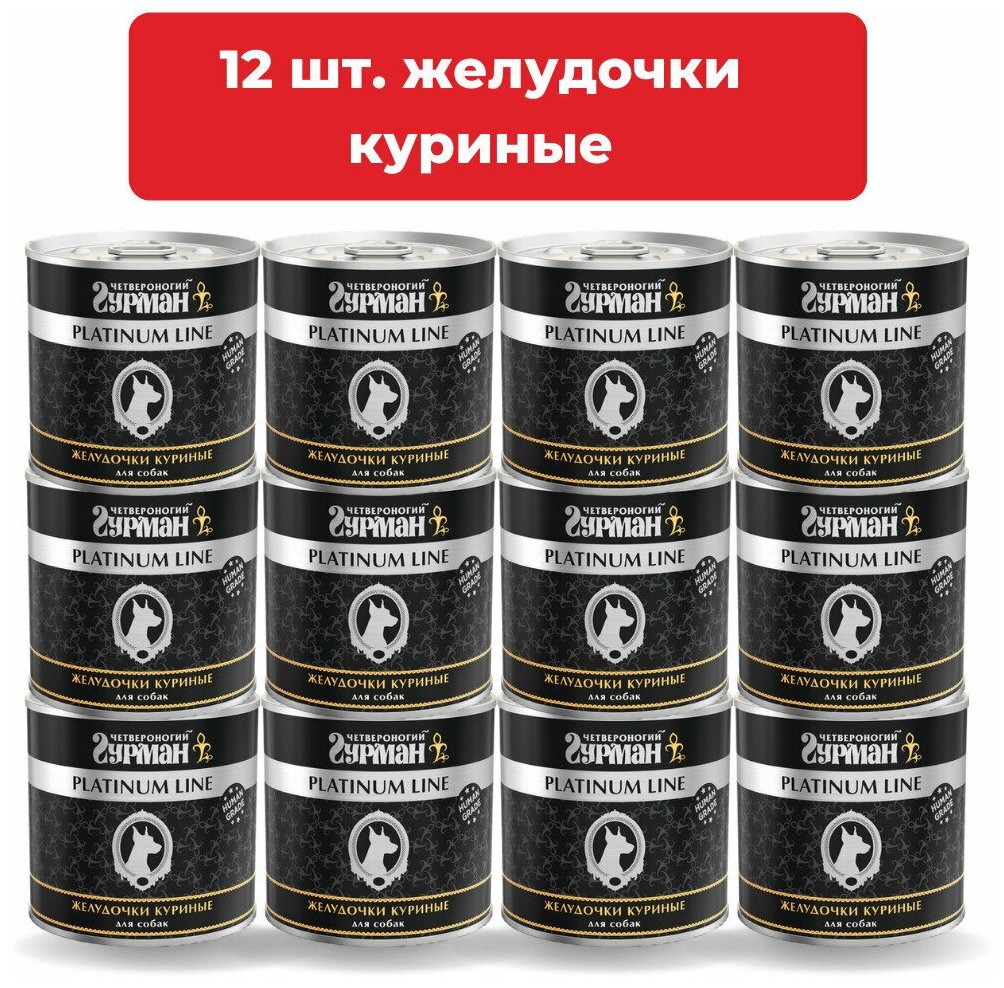 Четвероногий Гурман Platinum line консервированный корм с желудочками куриными в желе для взрослых собак всех пород - 240 г (12 шт)