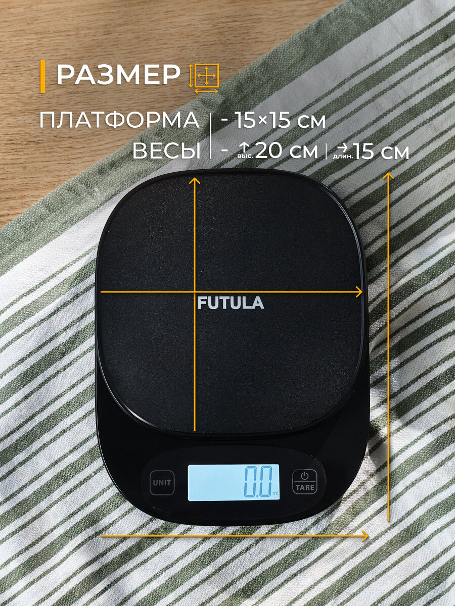 Кухонные электронные весы Futula Kitchen Scale 2 черные, электронные, индикатор заряда батареи и перегрузки