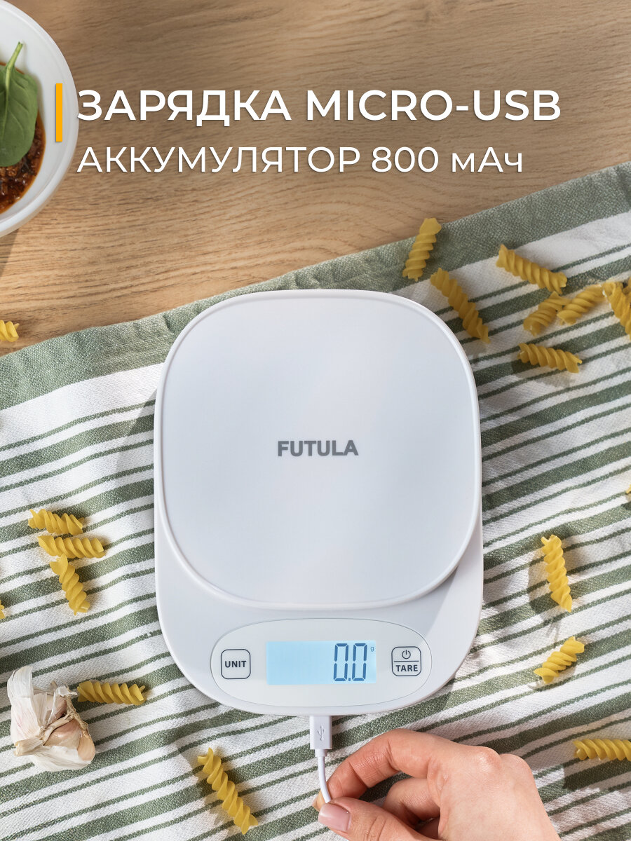 Весы кухонные Futula Kitchen Scale 1 белый, электронные, индикатор заряда батареи и перегрузки