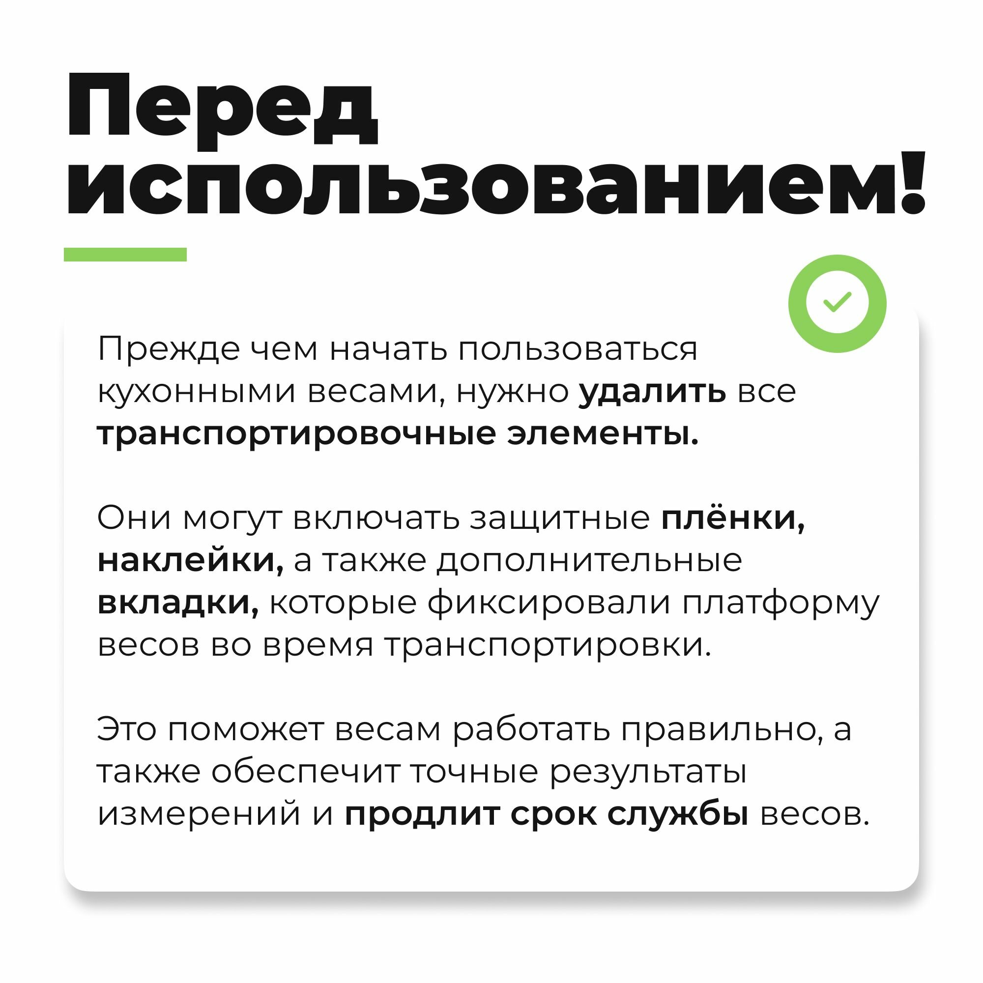 | Дополнительная информация | Заряд от USB; Автоотключение через 2 минуты; Измерение объема жидкости; Индикация перегрузки; Подсветка экрана; Индикация неровной поверхности; Компактная и функциональная форма. |