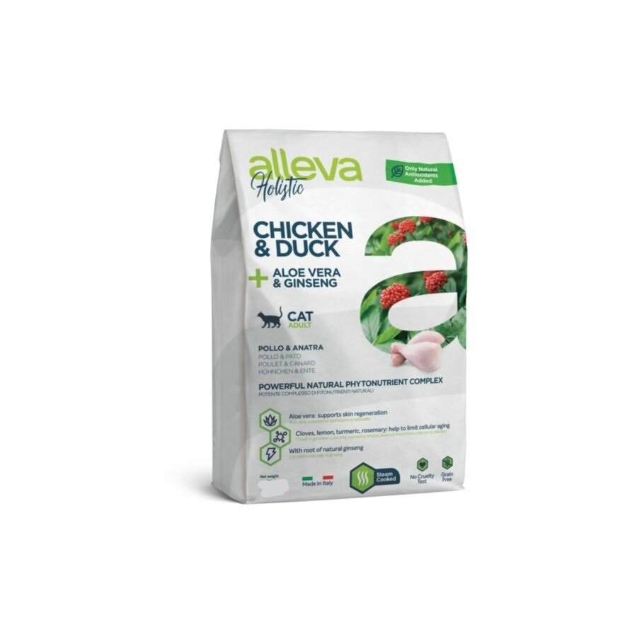 Сухой корм ALLEVA HOLISTIC CAT ADULT CHICKEN & DUCK, для взрослых котов/кошек, беззерновой, с курицей, уткой, алоэ вера и женьшенем, 1,5 кг